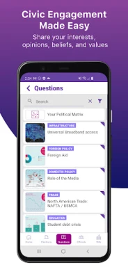 Answer Daily Policy Questions, to see how the country feels about key issues. Find your place on the political spectrum and compare your position with your representatives and those running to represent you in the future.