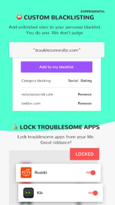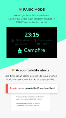Uninstall and unsubscribe alerts to a trusted buddy you nominate. Be held accountable for your actions.