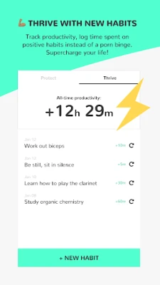 Supercharge your life with our productivity tracker. See how much time you've spent on positive habits instead of a porn binge. It's time to cultivate new habits!