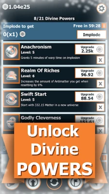 - Unlock 24 powerful Divine Abilities to shape your universe your way.