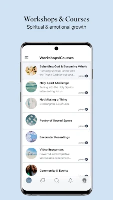 Follow your interests in the various spaces: Make Friends, Pray Together, Encounter God, Read Scripture, Testify Goodness, P.T.S.D., Poetry & Creativity, and Monthly Themes.