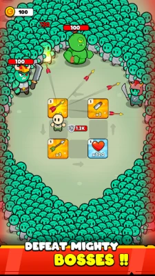 Build your team of heroes, each with their own style and skills. Choose a Stone warrior for toughness, a Goblin for unpredictable attacks, or an Electric Archer for ranged power. Mix and match heroes with different weapons to create new tactics every run. With upgrades and combinations to explore, no two battles ever feel the same.