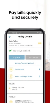 ● Make Insurance Payments — Quickly and securely pay your car insurance and home insurance bills from your fingertips. Enroll in auto pay, schedule an upcoming payment, or make a one-time payment and store all of your insurance payment information to make future bill paying safe and simple. It’s that easy.