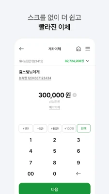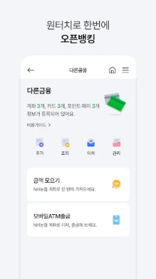 - 농협계좌 뿐만 아니라 다른은행 계좌까지 조회, 이체가 가능합니다.