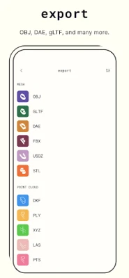 ● Export mesh data in .obj, .dae, .fbx, .stl, & .gltf