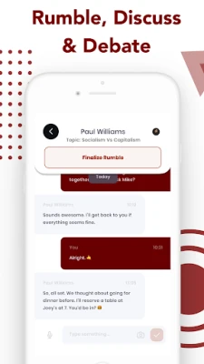 Rumble Debate is your go-to social media application for important debates on different issues and current events. Connect with others, raise your voice, and make a difference!