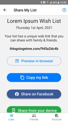 No sign-up required, and we don't collect any personal information. If you do decide to sign up, you'll then be able to manage multiple lists on multiple devices, including on the Things To Get Me website.