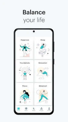 Balance's meditations are organized in 10-day Plans that teach concrete meditation skills to improve your mental health and achieve your goals. You'll discover how to bring mindfulness and meditation into your daily life, increase your focus among distractions, improve your sleep, reduce anxiety, and find deep relaxation as you learn to breathe deeply to reduce anxiety and stress, accompanied by soothing white noise audio and other relaxing sounds.